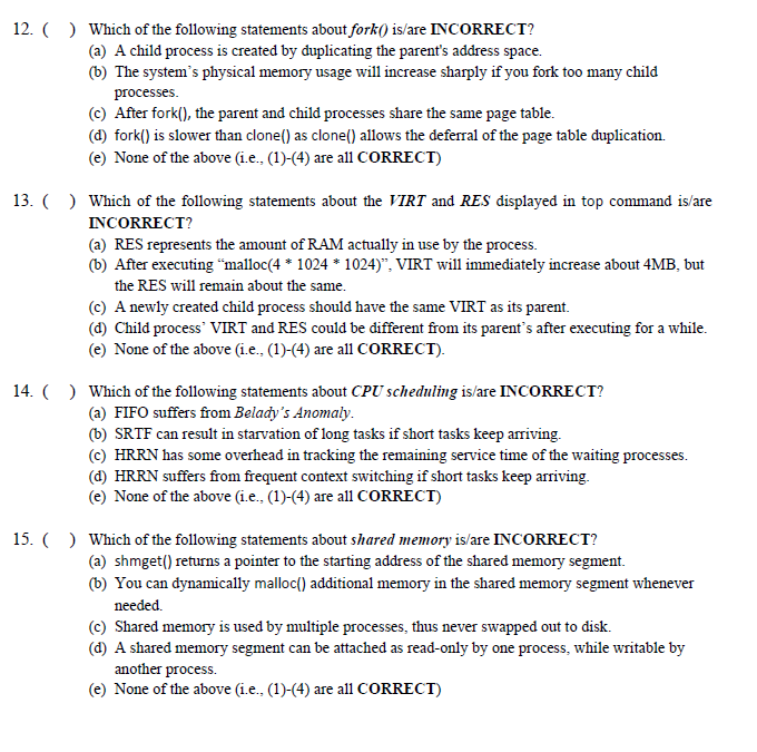 Solved 12.() Which of the following statements about fork() Fork How Many Child Process Will Be Created actually, there should be 8 threads and 6 processes. a process executes the code fork(); One parent and three children,. The new process created by fork () is called. in this article, we’ll explore how to create a program that spawns four processes: an existing process can create a new one by calling the fork (. Fork How Many Child Process Will Be Created.